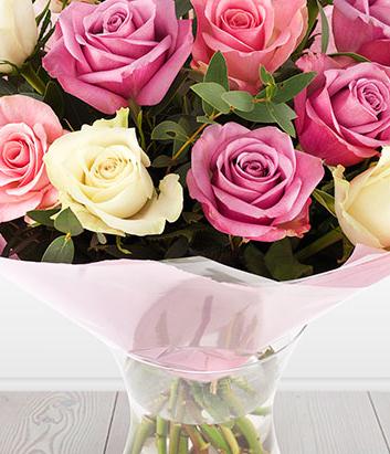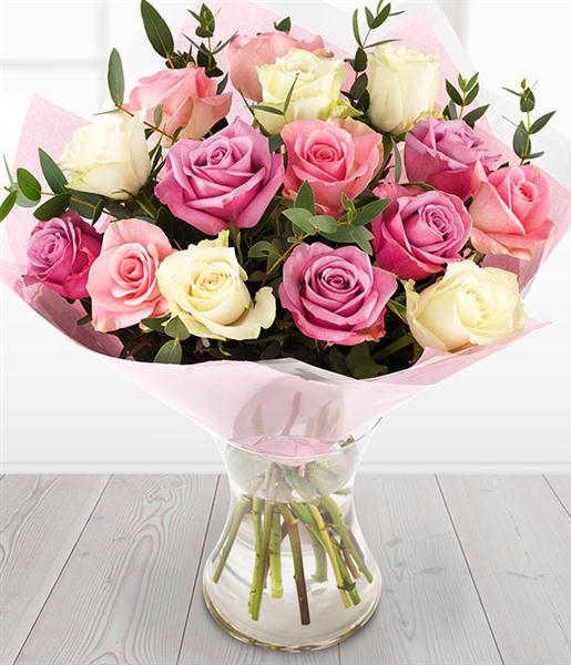A beautifully fragrant bouquet of mixed cream, mauve and delicate pink Roses.